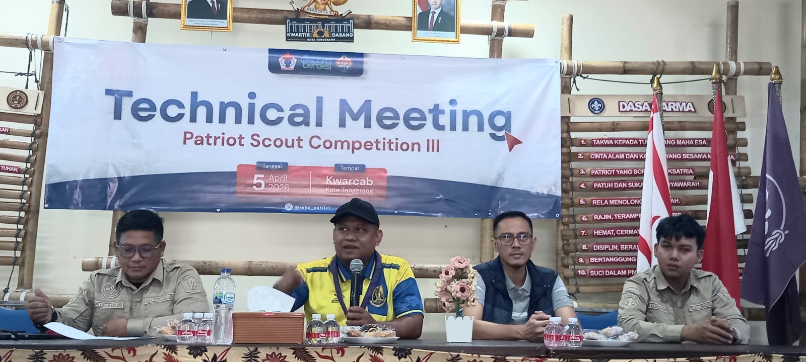 OBORBANGSA.COM, KOTA TANGERANG – Rintisan Saka Patriot Kwartir Cabang (Kwarcab) Gerakan Pramuka Kota Tangerang menggelar technical meeting Patriot Scout Competition (Pascom) III Piala Walikota Tangerang di Grha HM Masduki Jalan Mayjen Sutoyo Kelurahan Sukarasa Kecamatan Tangerang, Minggu siang 05 April 2026. Pascom III Piala Walikota Tangerang dijadwalkan akan diselenggarakan di Stadion Benteng Rebron Kota Tangerang, Sabtu 25 April 2026.