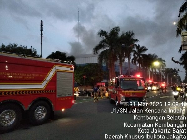 OBORBANGSA.COM, JAKARTA — Kepanikan pecah di kawasan Kembangan Selatan, Jakarta Barat, Selasa (31/3/2026) sore. Kobaran api tiba-tiba mengamuk di lantai 3 ruko milik PT V2 Indonesia, perusahaan penyewaan sound system, hingga membuat karyawan berhamburan menyelamatkan diri.