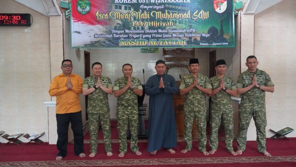 Dalam sambutannya, Danrem 051/Wijayakarta Brigjen TNI Nugroho Imam Santoso S.E, M.M, yang dibacakan oleh Kasiren Korem 051/Wkt Kolonel Inf Gandung Eko Prabowo, S.I.P., M. Si., menekankan pentingnya menjadikan peristiwa Isra Mi’raj sebagai momentum untuk meningkatkan keimanan dan ketakwaan kepada Allah SWT, sekaligus memperkuat disiplin, moral, dan integritas prajurit dalam melaksanakan tugas pengabdian kepada bangsa dan negara.