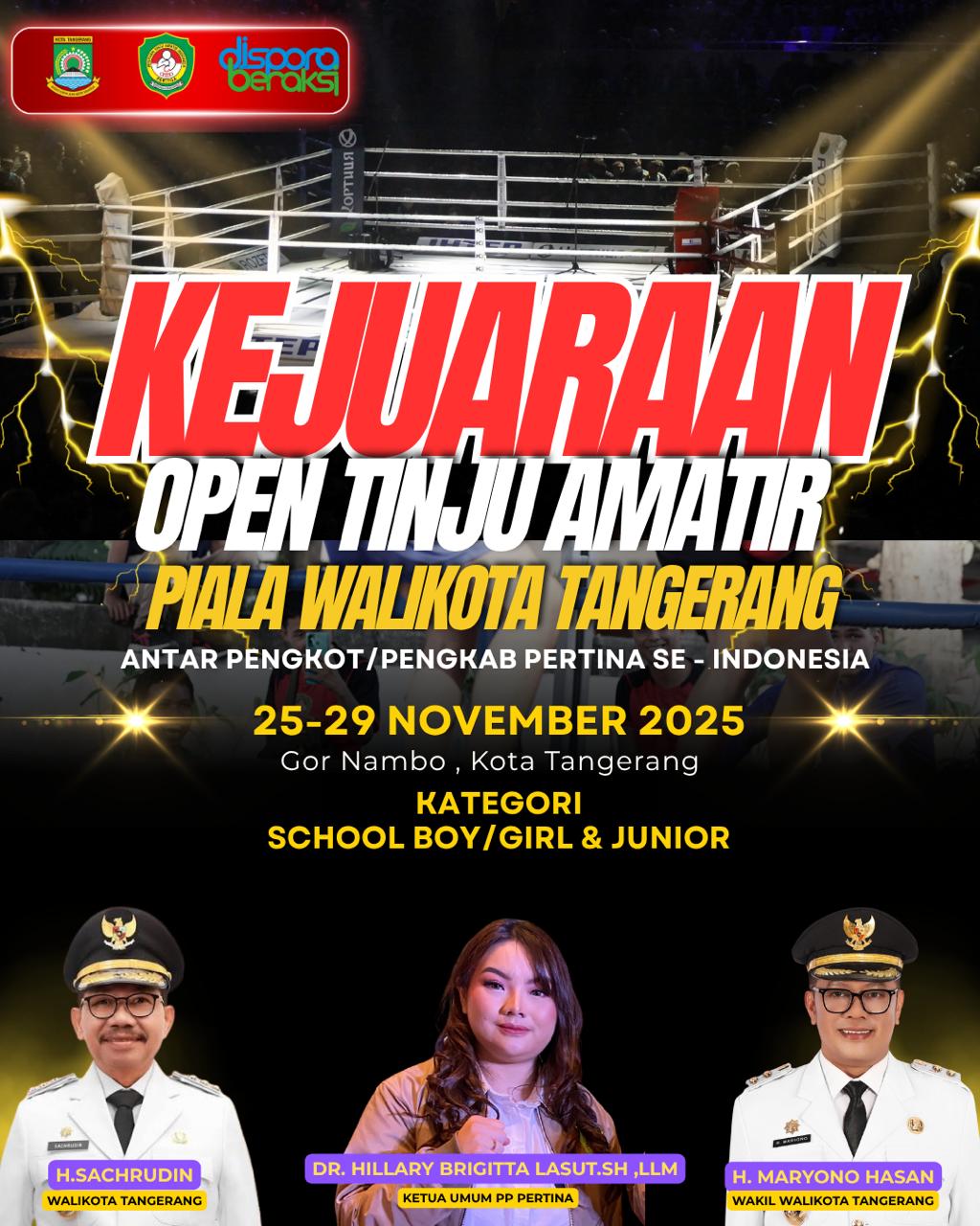 Open tournament tinju amatir kategori school boy/girl dan junior Piala Walikota Tangerang diselenggarakan di Gor Nambo Krida Arena, Jalan M Toha Kelurahan Nambo Jaya Kecamatan Karawaci, Kota Tangerang, 25 – 29 November 2025.
