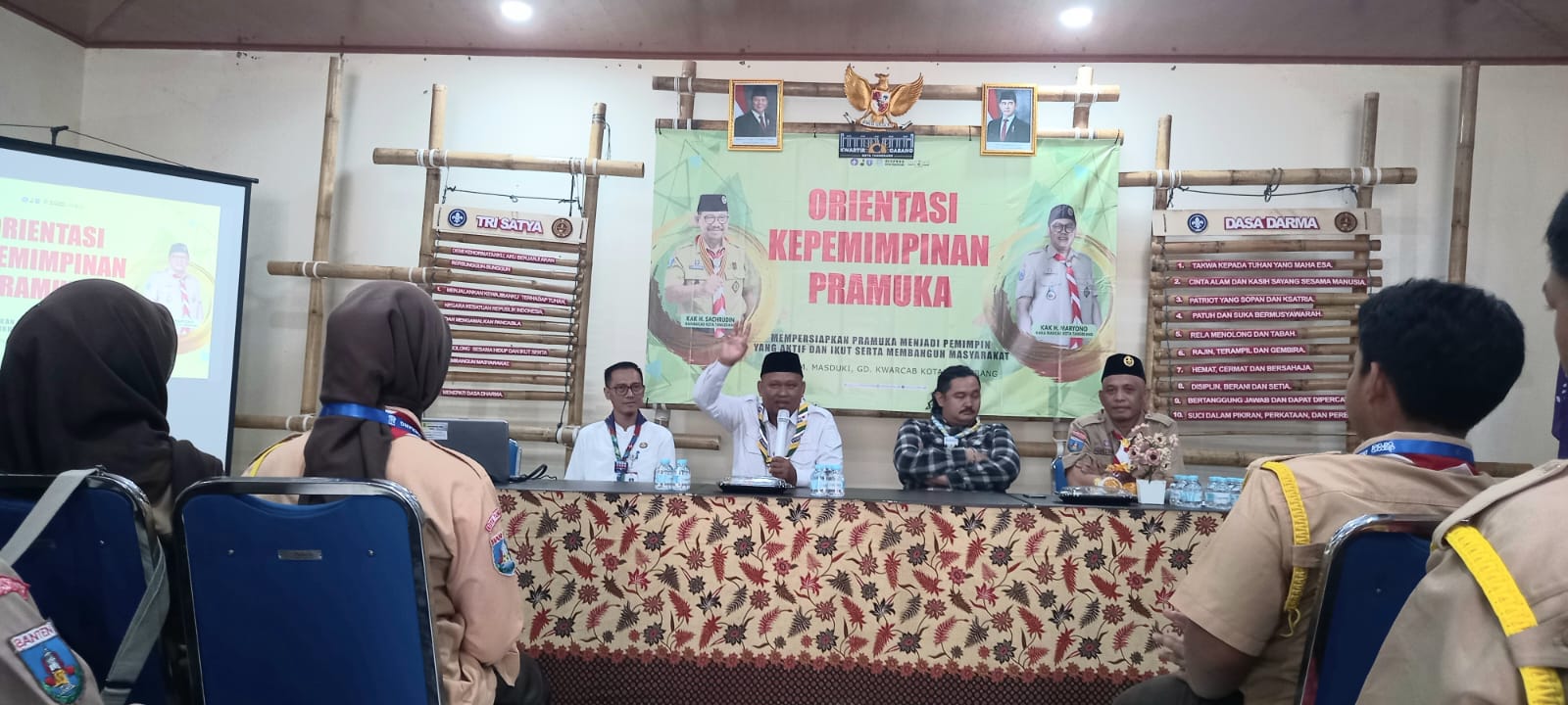Kepala Dispora Kota Tangerang, Kaonang dan Wakil Ketua DPRD Kota Tangerang Andri S Permana hadir sebagai pemateri dalam Orientasi Kepemimpinan Pramuka yang digelar Dispora bersama Pusdiklatcab Gerakan Pramuka Kota Tangerang.
