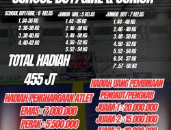 Sedangkan bagi kontingen atau beregu, terang Kaonang, yakni juara I mendapat hadiah Rp20.000.000. Juara II kontingen atau beregu Rp15.000.000. Juara III kontingen atau beregu Rp10.000.000.