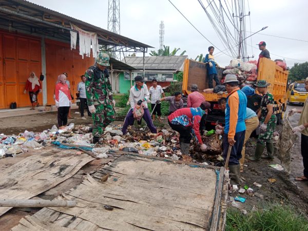 Koramil 07/Kresek bergerak cepat dengan menggelar karya bakti pembersihan lingkungan bersama warga yang melibatkan Komduk, DLHK Kecamatan Kresek.