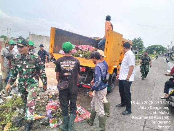 OBORBANGSA.COM – Kodam Jaya, TIGARAKSA – Personel Satgas Sampah Koramil 01/Teluknaga, Kodim 0510/Tigaraksa, bergerak cepat membersihkan tumpukan sampah liar di Jalan Cengklong RW 01/06, Desa Jatimulya, Kecamatan Kosambi, Minggu (18/1/2026).