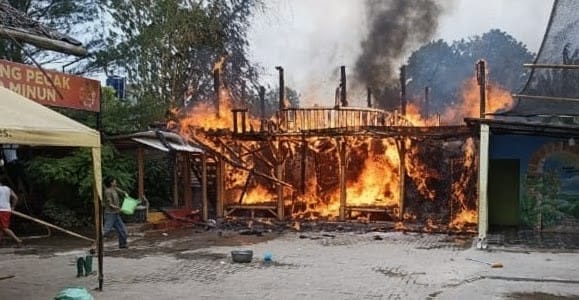 Satu Bangunan Warung Pecak Mpo Minun di Pinang Terbakar