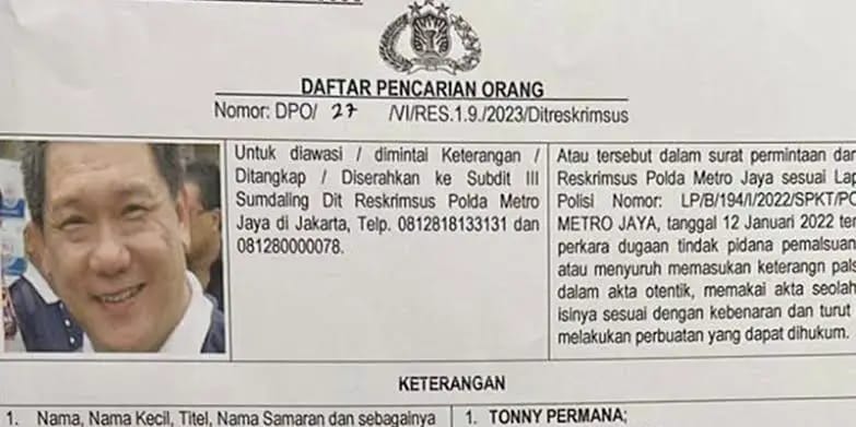 “Bahwa penyidik Unit V Subdit III Sumdaling Ditreskrimsus Polda Metro Jaya telah menetapkan tersangka dalam perkara dugaan tindak pidana pemalsuan dan atau menyuruh memasukan keterangan palsu ke dalam akta otentik, memakai akta seolah-olah isinya sesuai kebenaran dan turut serta melakukan perbuatan yang dapat dihukum,” demikian bunyi surat pemberitahuan yang ditandatangani oleh Dirreskrimsus Polda Metro Jaya Kombes Pol Auliansyah Lubis.