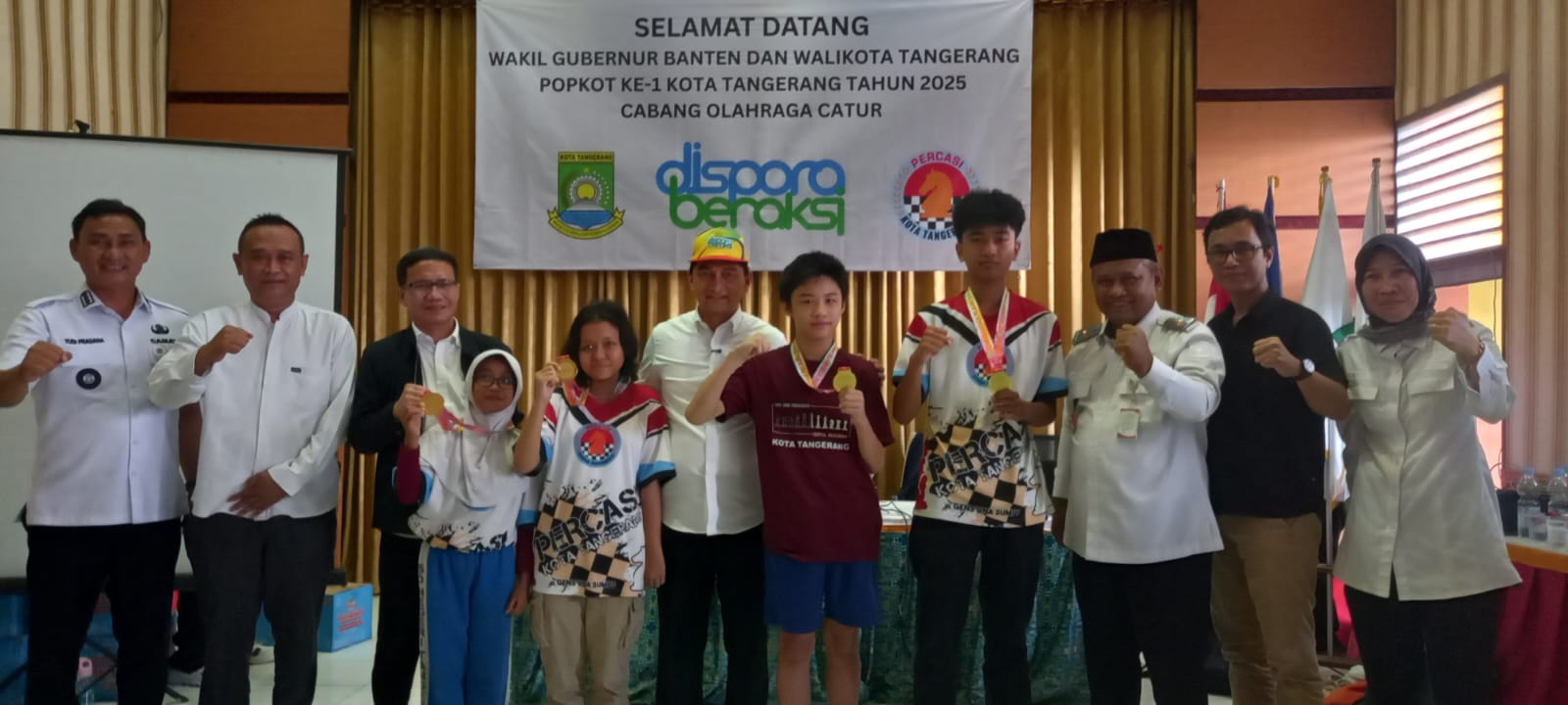 Hadir mendampingi Wakil Gubernur Banten pada kesempatan itu Kepala Dinas Pemuda Olahraga (Dispora) Kota Tangerang Kaonang dan Ketua Tim Kerja Olahraga Dispora Elvida Nuke Nilvana. Dalam kesempatan itu Wakil Gubernur Achmad Dimyati Natakusumah dan Kepala Dispora Kota Tangerang Kaonang melakukan upacara penghormatan pemenang (UPP) kepada pada juara catur Popkot Tangerang I/2025.